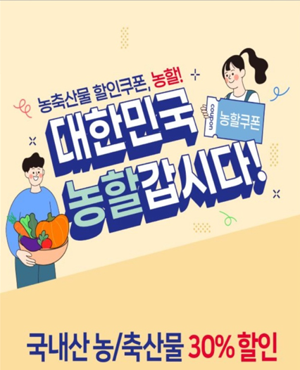 진행되는 위 이벤트이외에도 현재 국내산 신선 농축산물 최대 40% 할인하는 이벤트가 진행되고 있습니다.