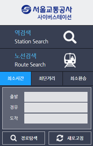 아래의 사이트를 클릭하여 방문하시면 서울 교통공사 사이버 스테이션이라는 사이트에 접속하게 됩니다. 이 사이트는 지하철을 이용하시는분들에게 보다 편리하게 이용할 수 있게 만들어진 사이트입니다.