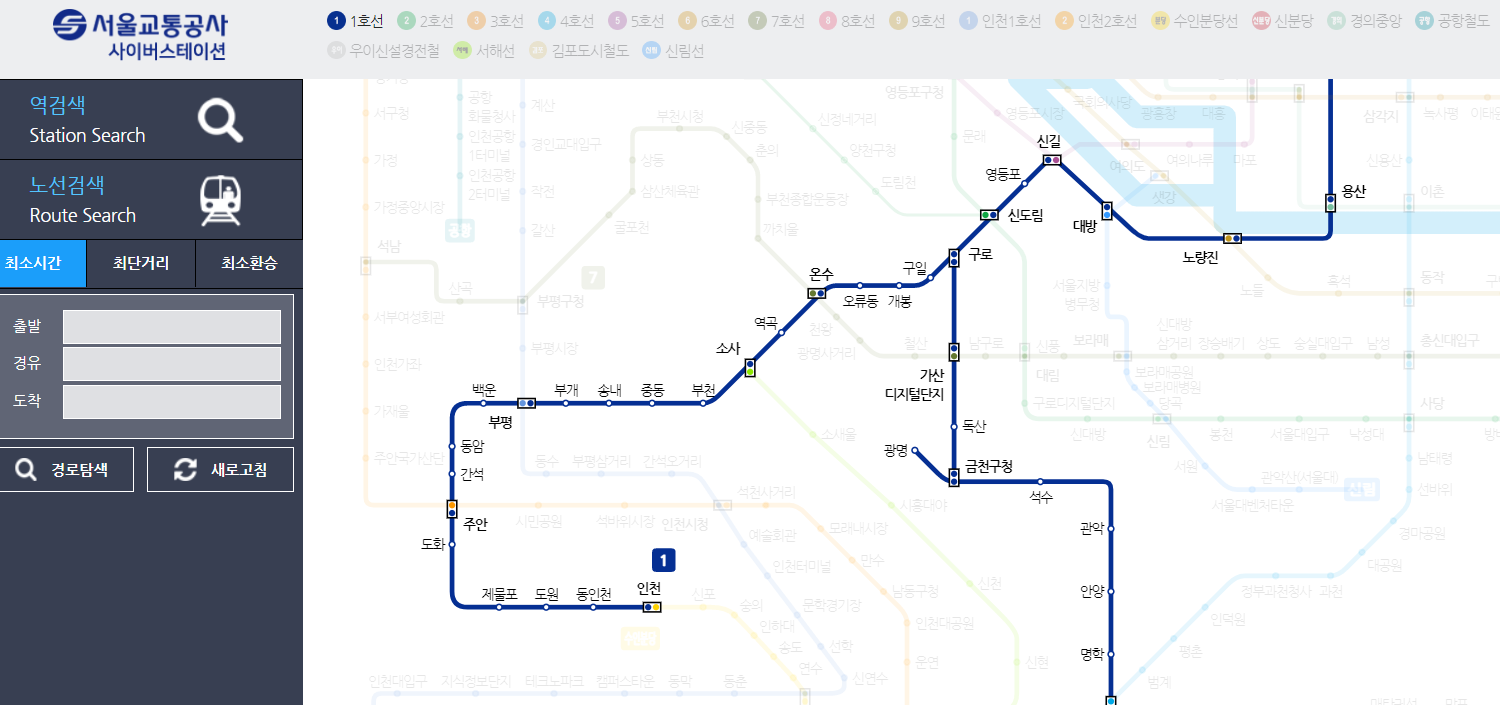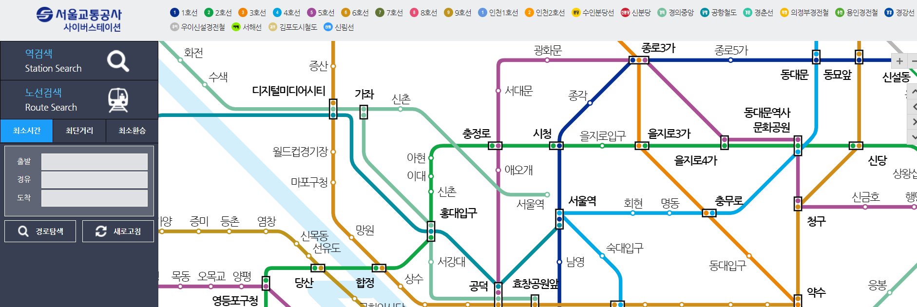 서울지하철 전 호선을 고화질로 크게 볼 수 있는 사이트입니다.