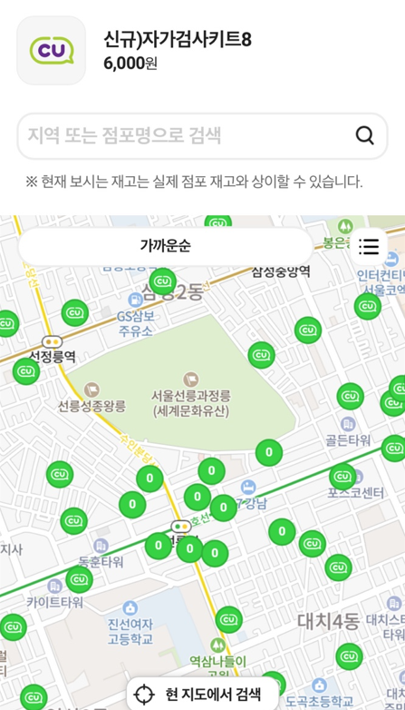 CU 자가진단 키트 재고 확인 방법